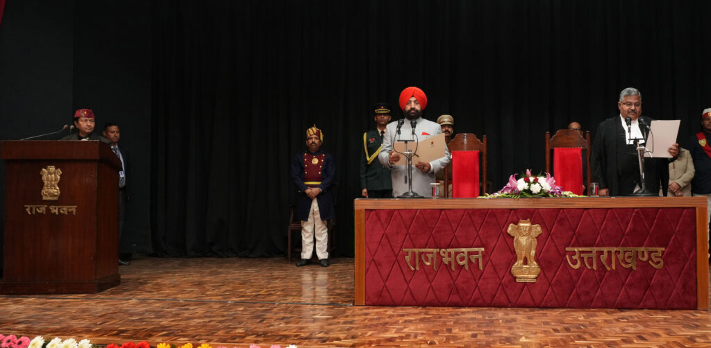 देहरादून। राज्यपाल लेफ्टिनेंट जनरल गुरमीत सिंह (से नि) ने गुरुवार को राजभवन देहरादून में उत्तराखण्ड उच्च न्यायालय के नवनियुक्त मुख्य न्यायाधीश न्यायमूर्ति गुहनाथन नरेंदर को पद की शपथ दिलायी। मुख्य सचिव राधा रतूड़ी ने भारत की मा. राष्ट्रपति द्वारा न्यायमूर्ति गुहनाथन नरेंदर को उत्तराखण्ड उच्च न्यायालय के मुख्य न्यायाधीश बनाए जाने से संबंधित अधिपत्र पढ़ा।