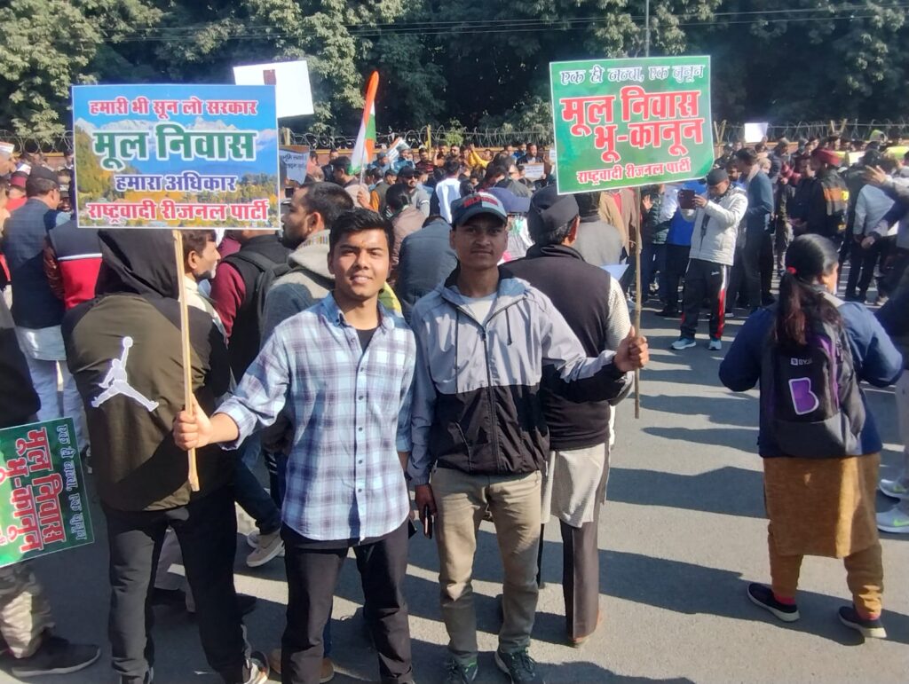 परेड ग्राउंड में स्वाभिमान रैली में लोग प्रदेश के विभिन्न हिस्सों से भी पहुंचे थे। हाथों में तख्तियां थीं। कई लोग हुड़का और अन्य पर्वतीय वाद्य यंत्रों के साथ पहुंचे थे। पहाड़ के परिधान पहने दूरदराज से आईं महिलाओं ने अपनी ओर सबका ध्यान खींचा। युवाओं का जोश देखने लायक था, तो बुजुर्ग भी पीछे नहीं थे। राजनीतिक दलों में यूकेडी अपने झंडे-डंडे के साथ रैली में शरीक हुई। परेड ग्राउंड से यह रैली कचहरी स्थित शहीद स्थल तक पहुंची, जहां पर जनसभा के माध्यम से भू-कानून और मूल निवास की मांगों को पुरजोर ढंग से उठाया गया।