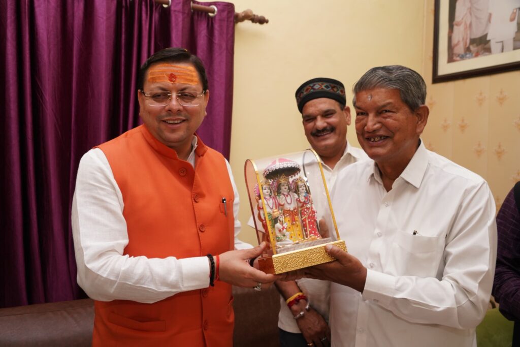 -केदारनाथ उपचुनाव में भाजपा और कांग्रेस एक-दूसरे पर जमकर हमलावर हैं। हमले की कमान भाजपा में सीएम पुष्कर सिंह धामी ने संभाली हुई है, तो कांग्रेस में यह काम पूर्व सीएम हरीश रावत के जिम्मे हैं। इन स्थितियों के बीच, दीपावली का त्यौहार भी है, जो कि आपसी सौहार्द का प्रतीक है। सीएम पुष्कर सिंह धामी ने पूर्व सीएम से इस मौके पर मुलाकात करने की अपने अभियान को जारी रखा हुआ है। इस क्रम में वह मंगलवार को सीधे पहुंच गए पूर्व सीएम हरीश रावत के आवास पर और उन्हें दीपावली की शुभकामनाएं दीं। हरीश रावत ने भी उनका गर्मजोशी से स्वागत किया।