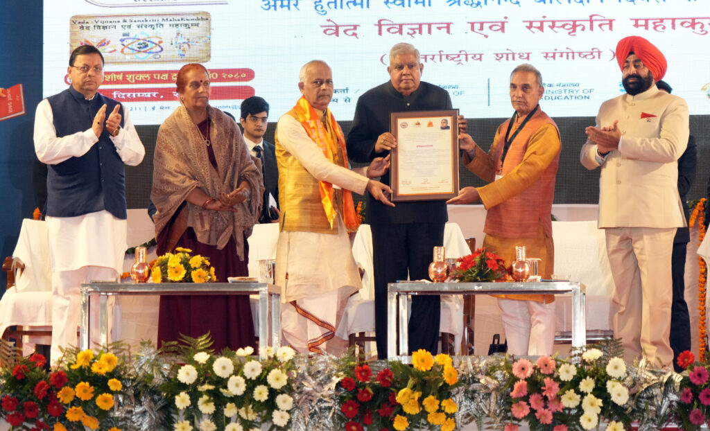 महर्षि दयानंद सरस्वती की 200वीं जयंती तथा स्वामी श्रद्धानंद के बलिदान दिवस के अवसर पर आयोजित इस महाकुंभ में राज्यपाल लेफ्टिनेंट जनरल गुरमीत सिंह (सेनि) एवं सीएम पुष्कर सिंह धामी ने भी प्रतिभाग किया। अपने संबोधन के दौरान उपराष्ट्रपति ने कहा कि माँ भारती के इस भू-भाग, देवभूमि उत्तराखंड में आना मेरा परम सौभाग्य है। उन्होंने कहा कि इस विश्वविद्यालय का वर्षों से नाम सुनता रहा हूं, आज पहली बार आने का मौका मिला है। नाम से ऊर्जावान होता रहा हूं, आज यहां से एक बड़ा संकल्प लेकर जाऊंगा। उपराष्ट्रपति ने विश्वास व्यक्त किया कि 2047 तक भारत न सिर्फ विकसित राष्ट्र होगा बल्कि विश्व गुरु की अपनी प्रतिष्ठा को फिर से हासिल करेगा। उन्होंने कहा कि मेरे सामने जो छात्र-छात्रायें हैं, वे 2047 के भारत के योद्धा हैं और निश्चित रूप से सफलता अर्जित करेंगे