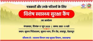 उदंकार न्यूजदेहरादून। मुख्यमंत्री पुष्कर सिंह धामी के निर्देश के क्रम में मंगलवार 17 जून को स्वास्थ्य और सूचना विभाग की...