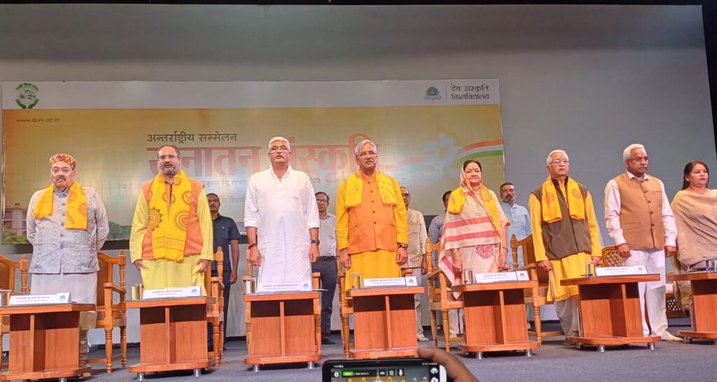 पूर्व मुख्यमंत्री और हरिद्वार सांसद त्रिवेंद्र सिंह रावत ने सनातन संस्कृति पर कार्यक्रम के मुख्य आयोजक के तौर पर कहा कि देवभूमि विकास संस्थान समाज में जागृति के लिए विभिन्न विषयों को लेकर सामाजिक कार्य कर रहा है। पर्यावरण की सुरक्षा और संरक्षा के साथ ही रक्तदान के बाद अब समाज को अंगदान-देहदान के लिए प्रेरित करने का प्रयास कर रहा है। उन्होंने कहा कि हम सनातनी हैं और भारतीय संस्कृति के ज्ञान को नई पीढ़ी को प्रसारित करने की हमारी जिम्मेदारी है। हमारी कोशिश होती है कि इस तरह के कार्यक्रम में युवाओं की भागीदारी ज्यादा हो। क्योंकि सनातन संस्कृति को आगे ले जाने और नया भारत बनाने की जिम्मेदारी अब आगे युवा पीढ़ी के कंधों पर ही है। त्रिवेंद्र ने कहा कि हमारी सनातन संस्कृति कभी भी किसी से भेदभाव नहीं करती। वसुधैव कुंटम्कम का मंत्र भी भारत ने ही दुनिया को दिया।